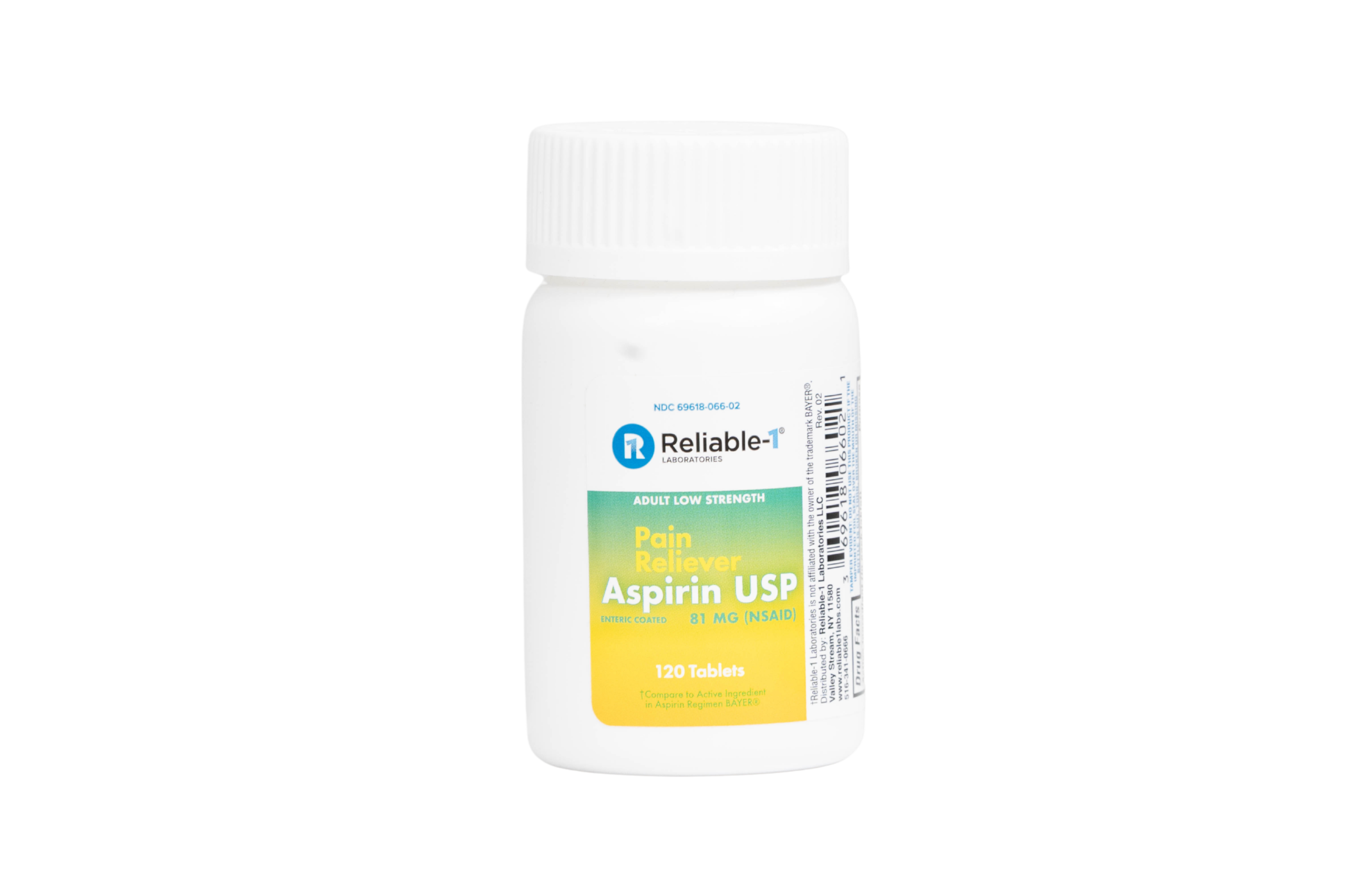 Low-dose aspirin (81 mg) enteric-coated tablets, designed to support heart health and provide relief from minor aches and pains.